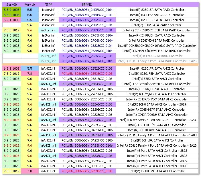 最近我也分析了skyfree的驱动,发现他们抛弃了7.8,使用5.5+8.9+9.6,通过分析原版驱动可以知道,9.6和8.9的hwid是一样的,没有必要并存。8.9能支持的,9.6应该都支持。没有7.8,5029&CC_0106应该是会挂的。(他用5.5来驱动2653&CC_0106)